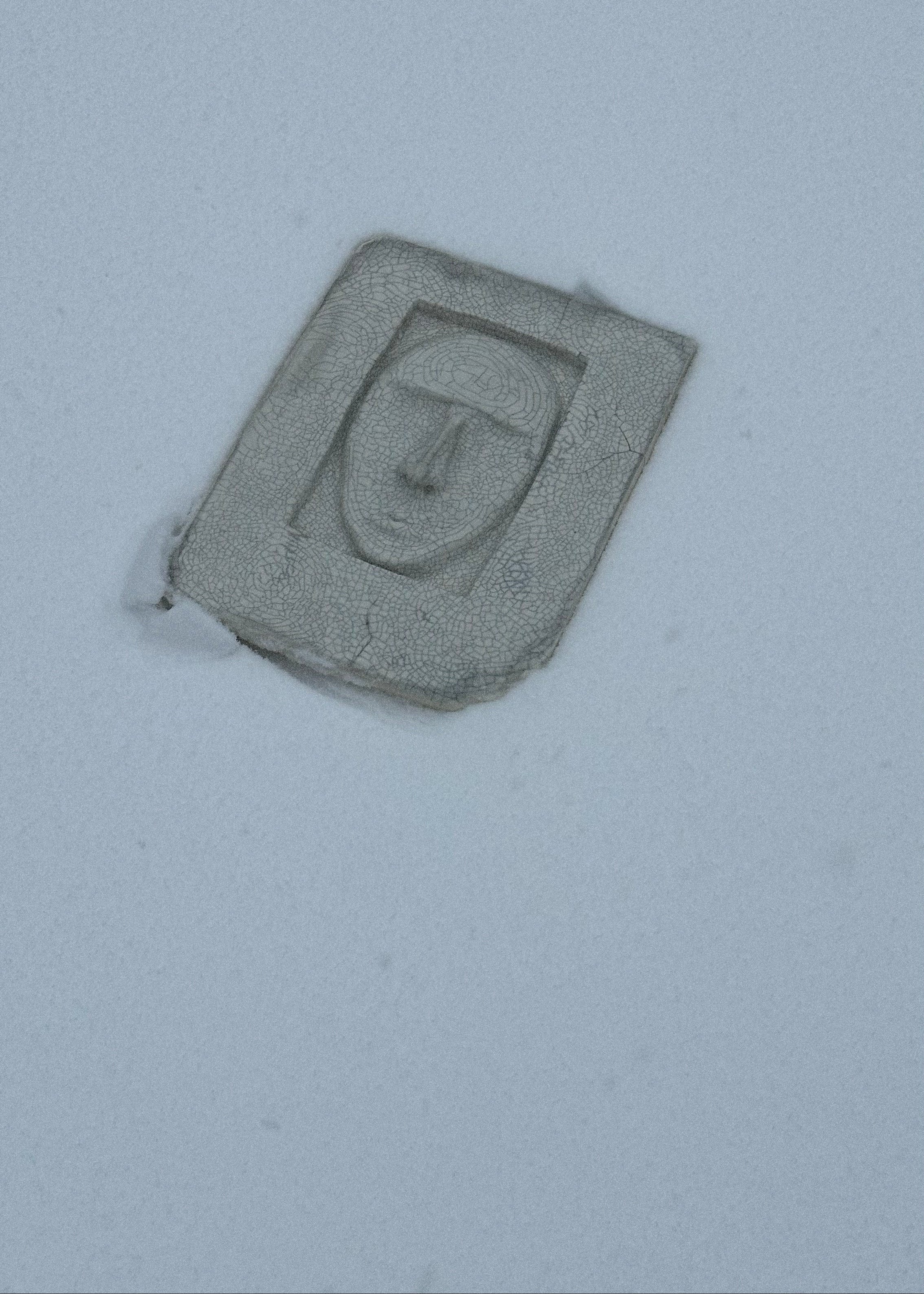 A portrait reduced to its essential structure. A porcelain relief with features that are partially withdrawn, allowing the material and surface to take precedence over representation.