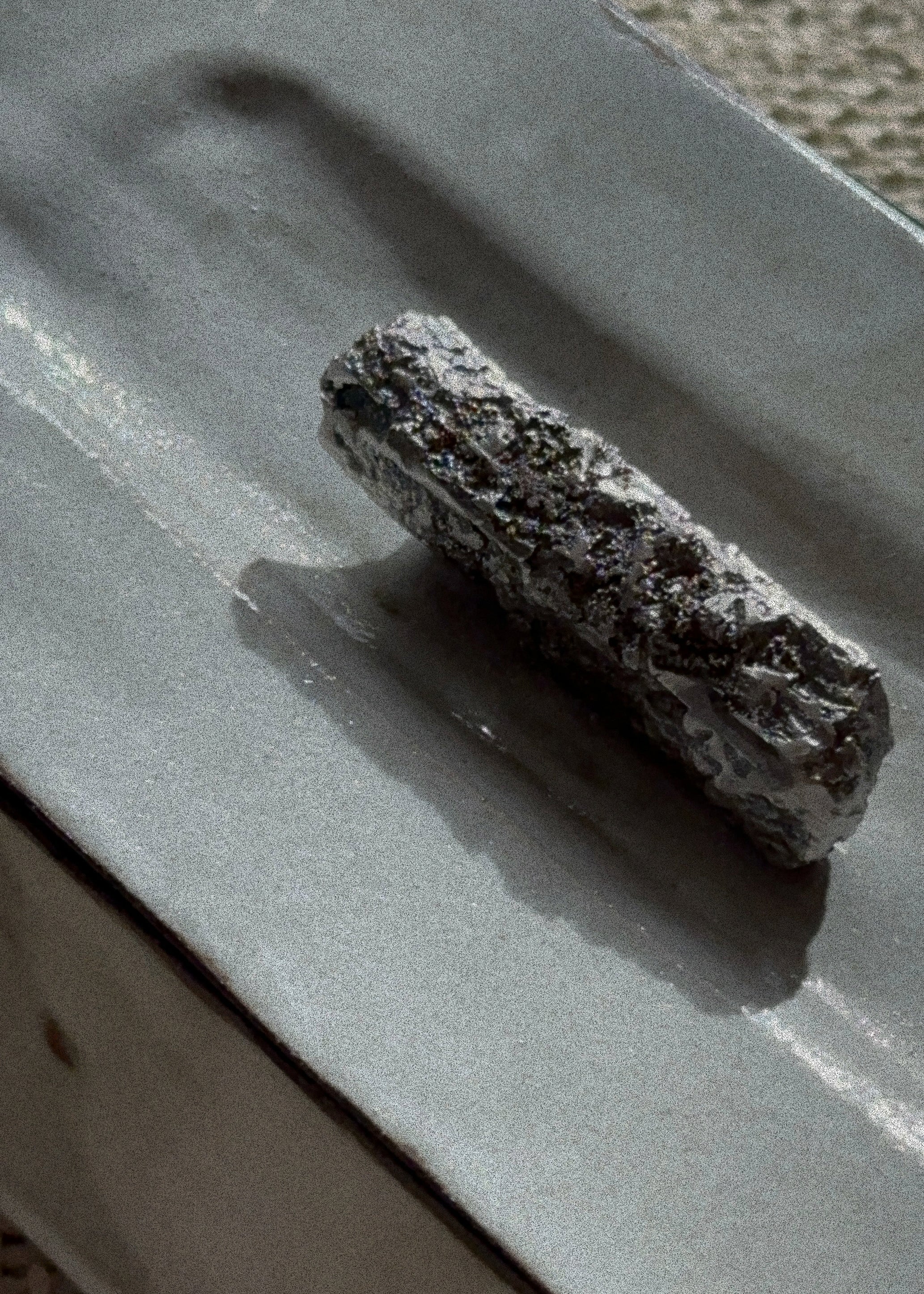 The OUKII Box takes the form of a rectangular vessel with a lidded top, anchored by a pewter handle. Cast in sand from an original stone, the handle retains the stone’s irregularity and mass. Together, ceramic and metal meet in a restrained composition, balancing precision with the residue of the natural form.
