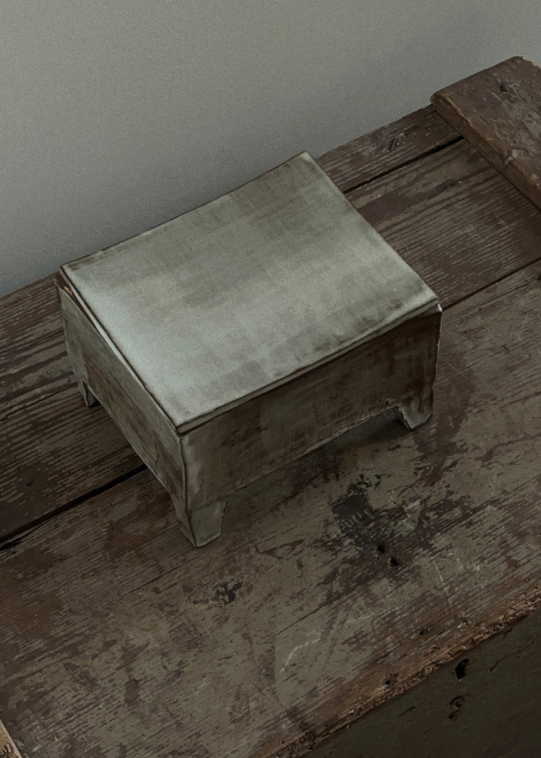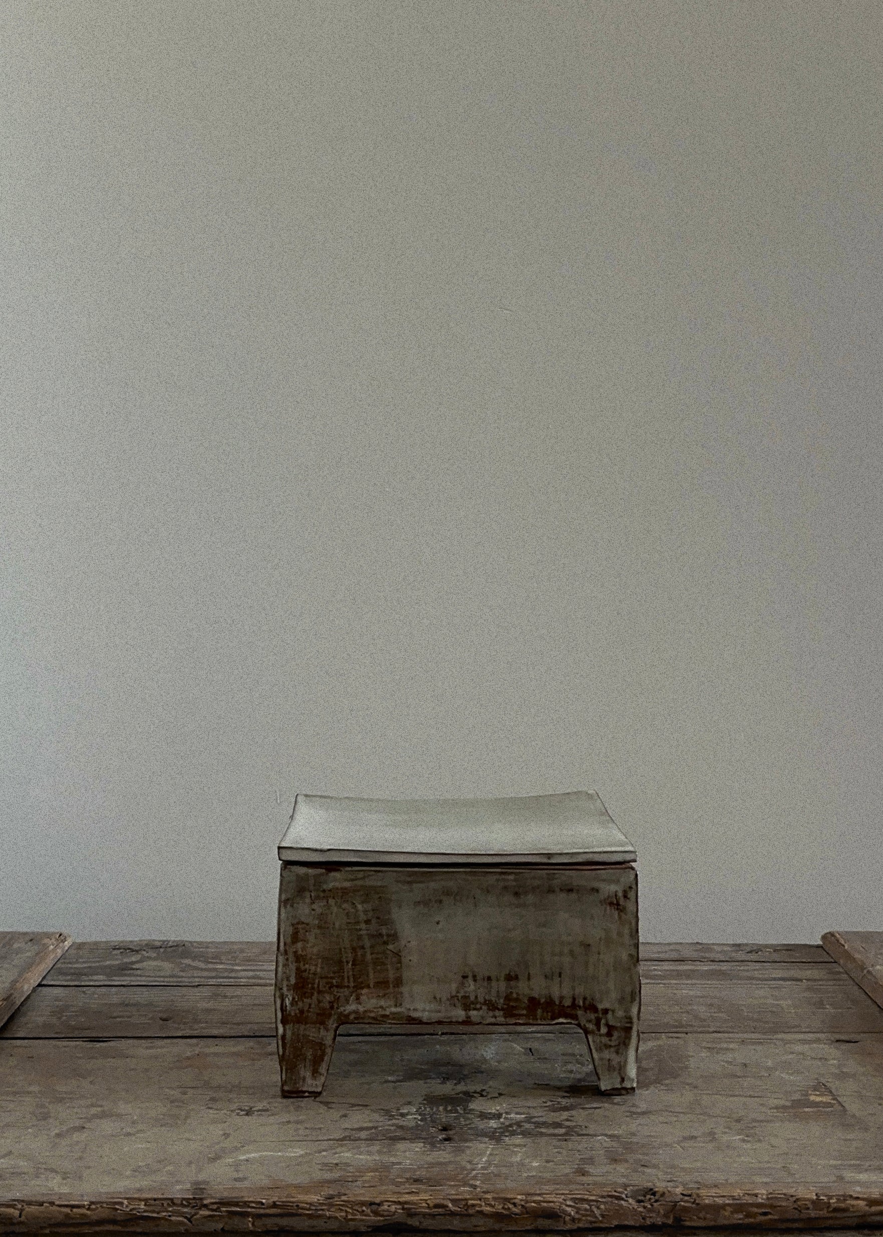 Sondo is a sculptural object defined by restraint and proportion. Formed from recycled clay, the work emphasizes material continuity and reuse rather than refinement or finish. Its simple, rectilinear structure prioritizes balance, mass, and surface clarity. The object reads architecturally, engaging the surrounding space through scale and placement rather than detail or ornament. Meaning is held in the material itself and in the discipline of reduction.